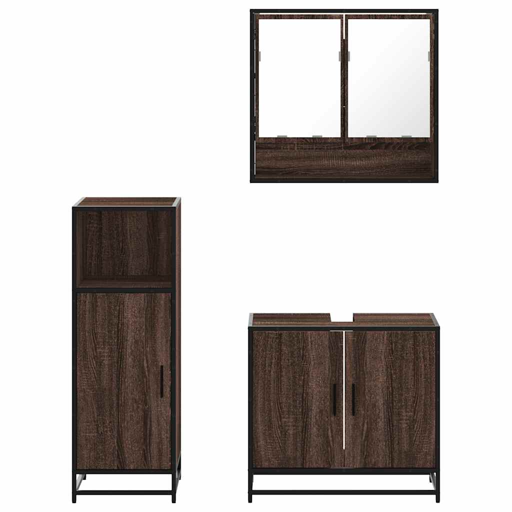 Set mobilier de baie, 3 piese, stejar maro, lemn prelucrat GartenMobel Dekor
