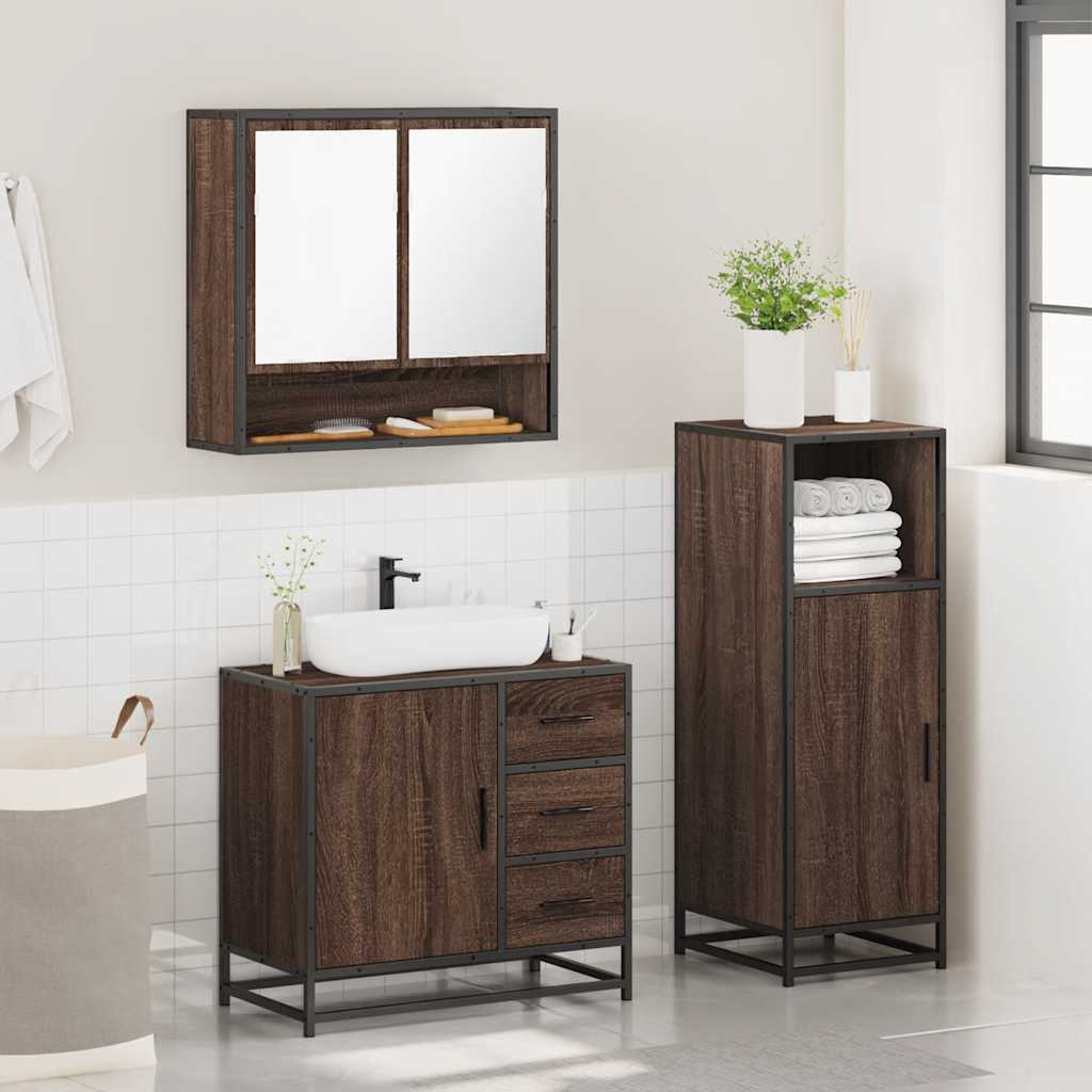 Set mobilier de baie, 3 piese, stejar maro, lemn prelucrat GartenMobel Dekor