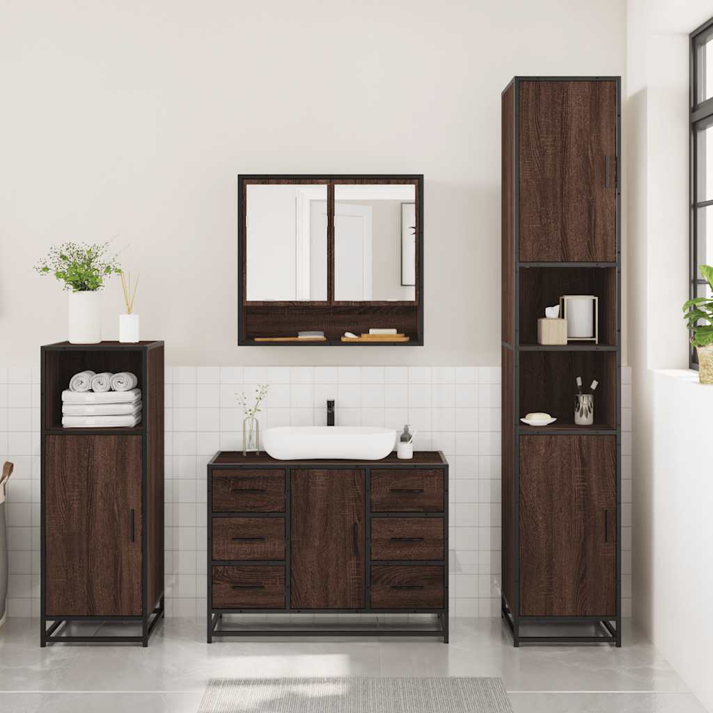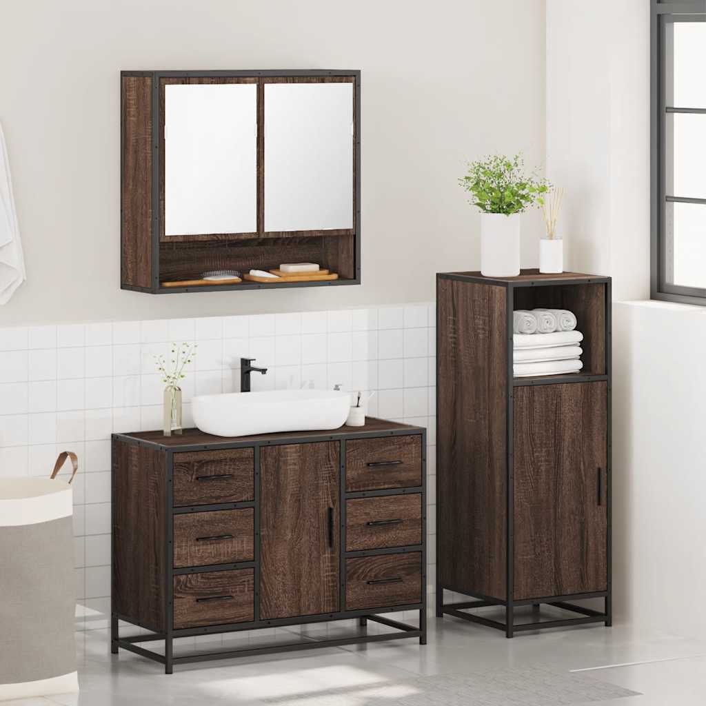 Set mobilier de baie, 3 piese, stejar maro, lemn prelucrat GartenMobel Dekor