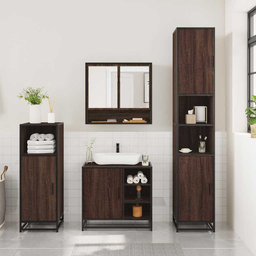 Set mobilier de baie, 3 piese, stejar maro, lemn prelucrat GartenMobel Dekor