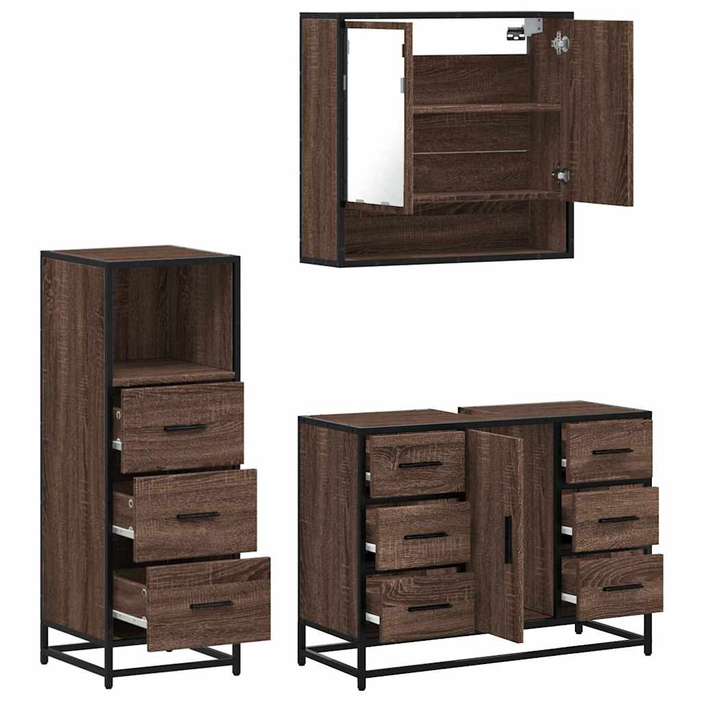 Set mobilier de baie, 3 piese, stejar maro, lemn prelucrat GartenMobel Dekor