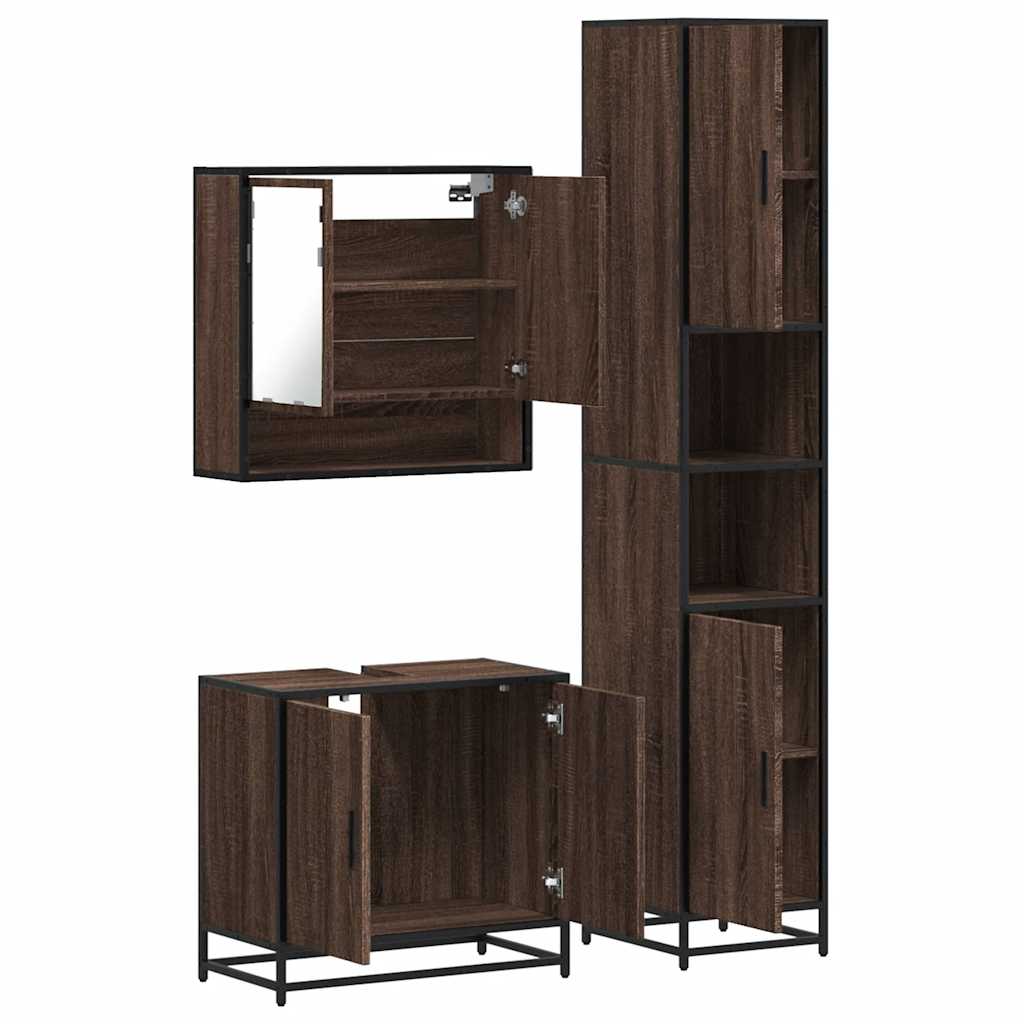 Set mobilier de baie, 3 piese, stejar maro, lemn prelucrat GartenMobel Dekor