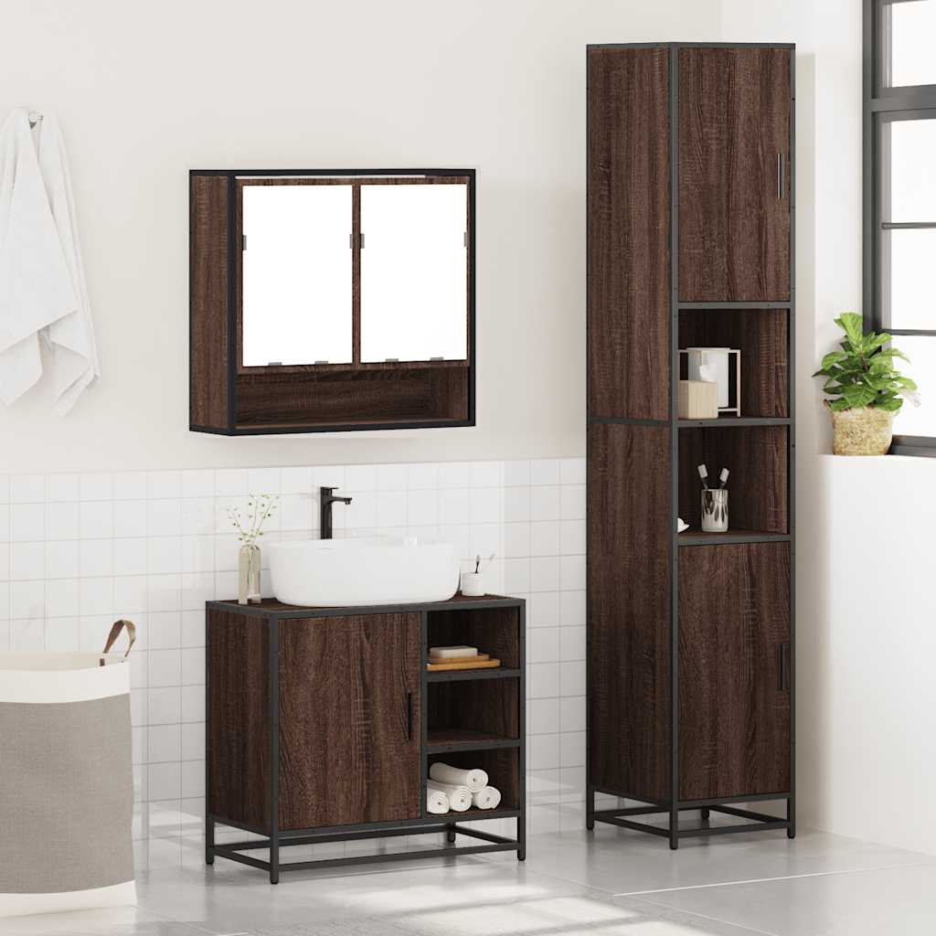 Set mobilier de baie, 3 piese, stejar maro, lemn prelucrat GartenMobel Dekor