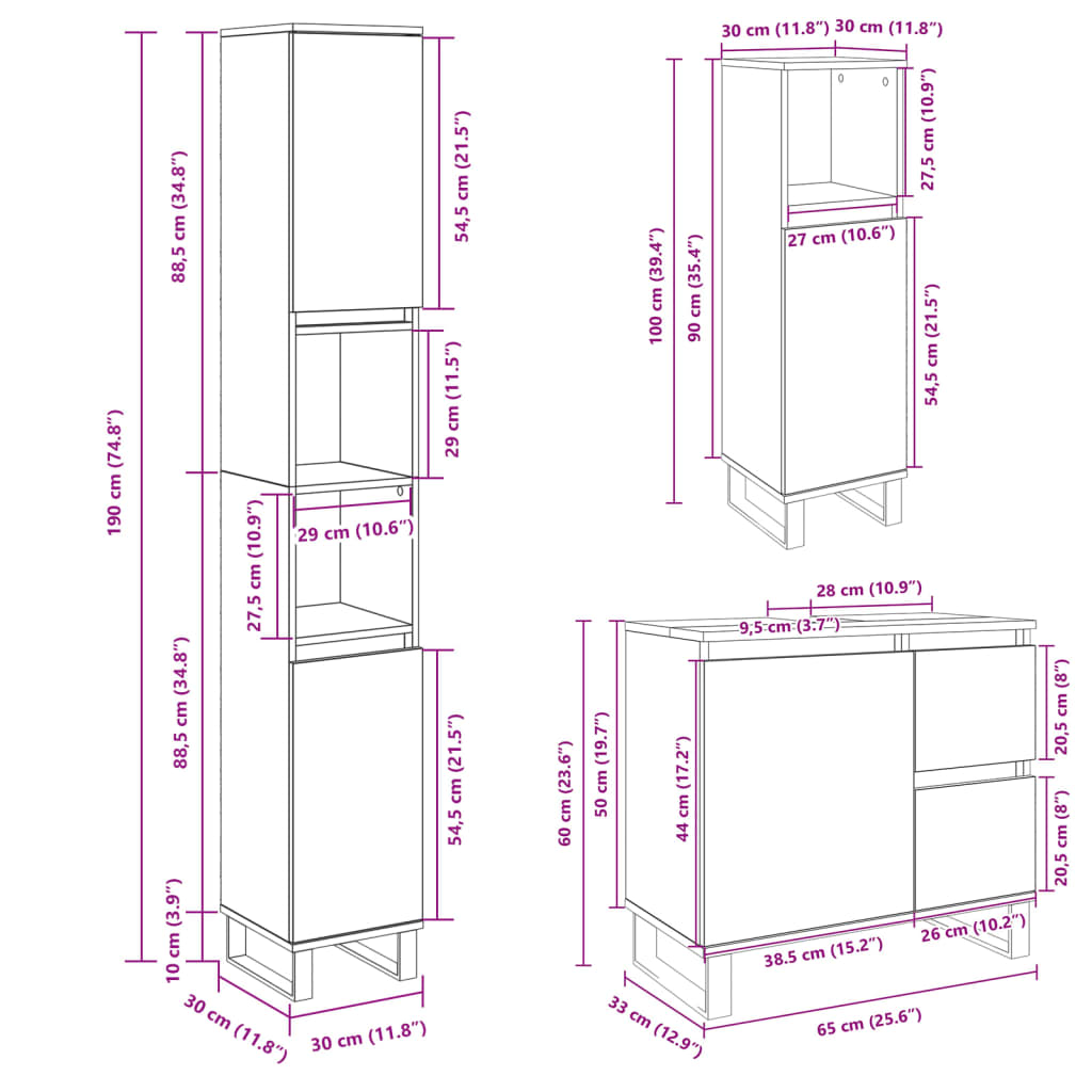 - Dimensiuni dulap de baie (L): 30 x 30 x 190 cm (l x ad. x î)