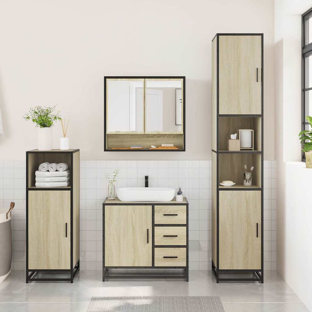 Set mobilier de baie, 3 piese, stejar sonoma, lemn prelucrat GartenMobel Dekor