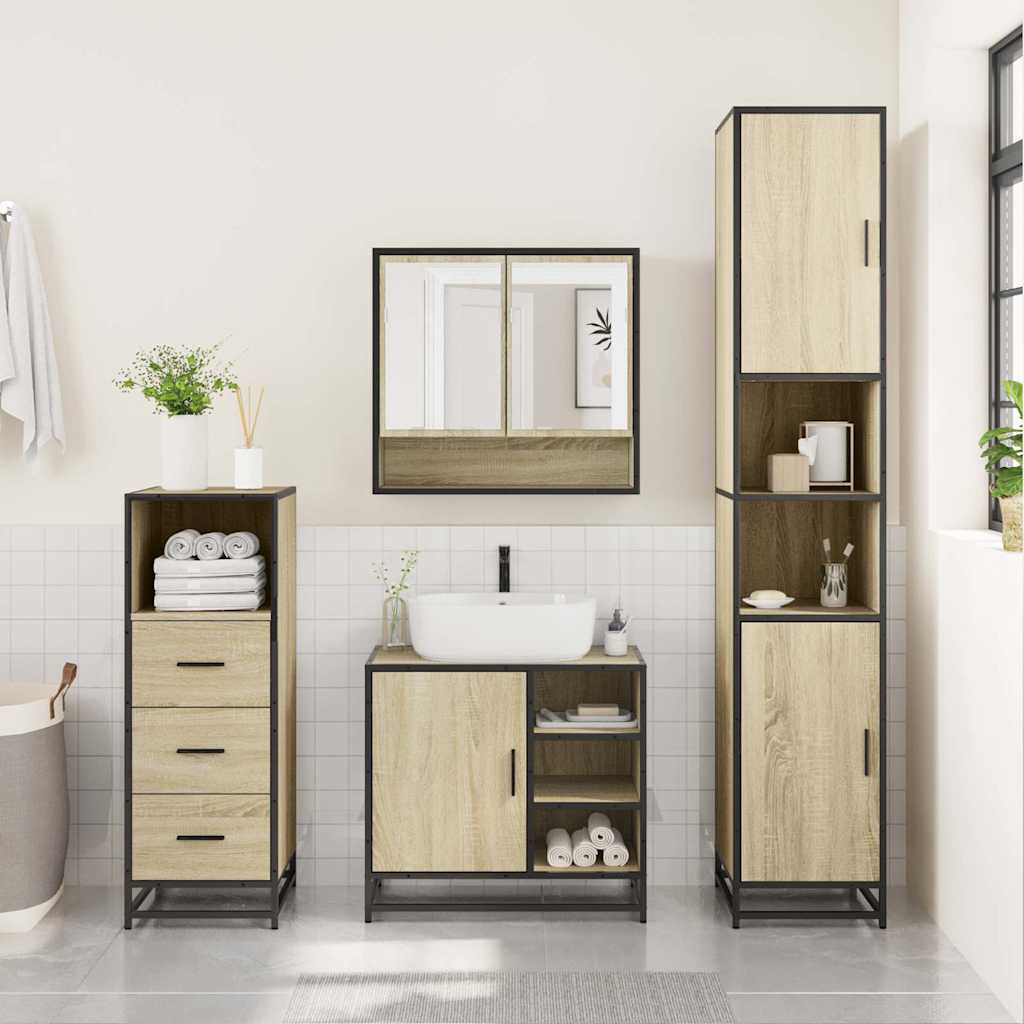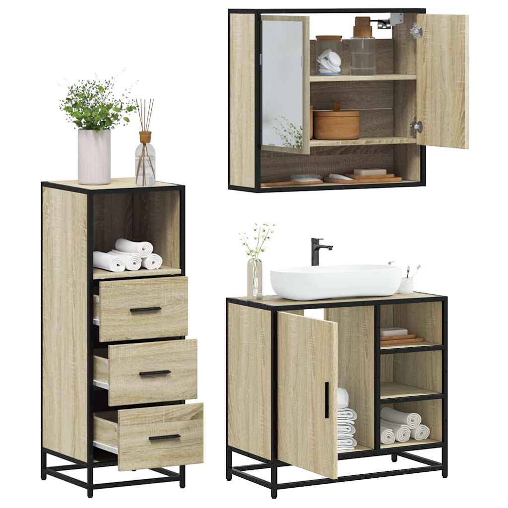 Set mobilier de baie, 3 piese, stejar sonoma, lemn prelucrat GartenMobel Dekor