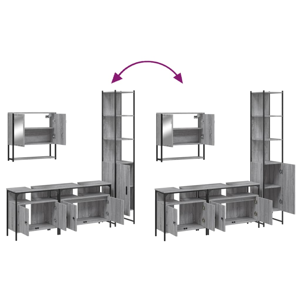 Set mobilier de baie, 4 piese, gri sonoma, lemn prelucrat GartenMobel Dekor
