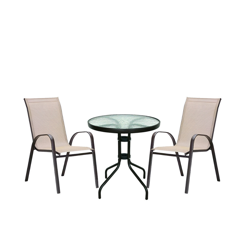 Set mobilier de balcon Leziter Largo, bej, 3 piese (masa sticla + 2 scaune)