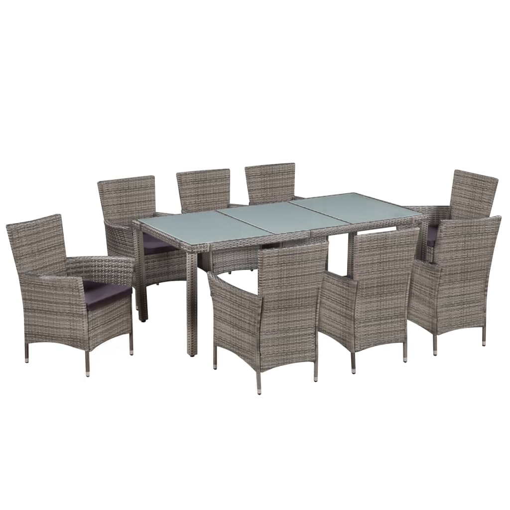Set mobilier de exterior cu perne, 9 piese, gri, poliratan GartenMobel Dekor