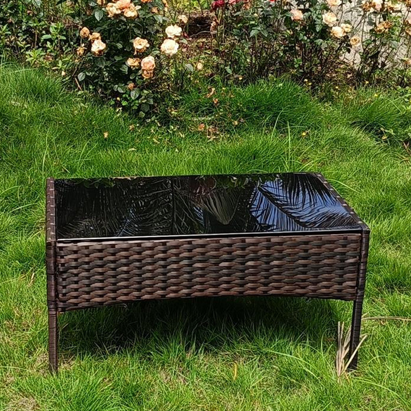 Transformă terasa, balconul sau grădina într-un colț de relaxare cu acest set mobilier grădină 4 piese, cu aspect elegant de ratan PE și cadru din metal. Setul include 2 fotolii, o canapea și o măsuță cu blat din sticlă – ideal pentru cafea, gustări și momente petrecute în aer liber.