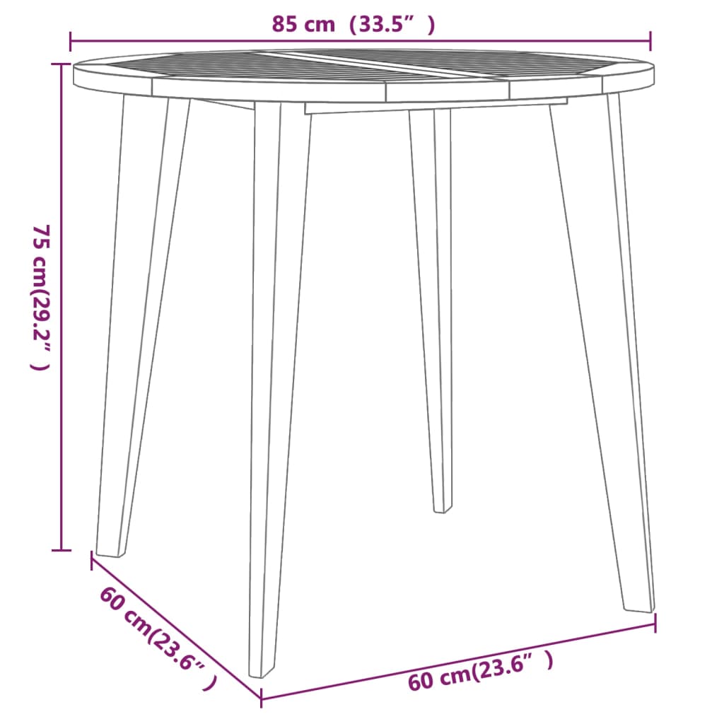 - Dimensiuni masă: 85 x 75 cm (diam. x î)