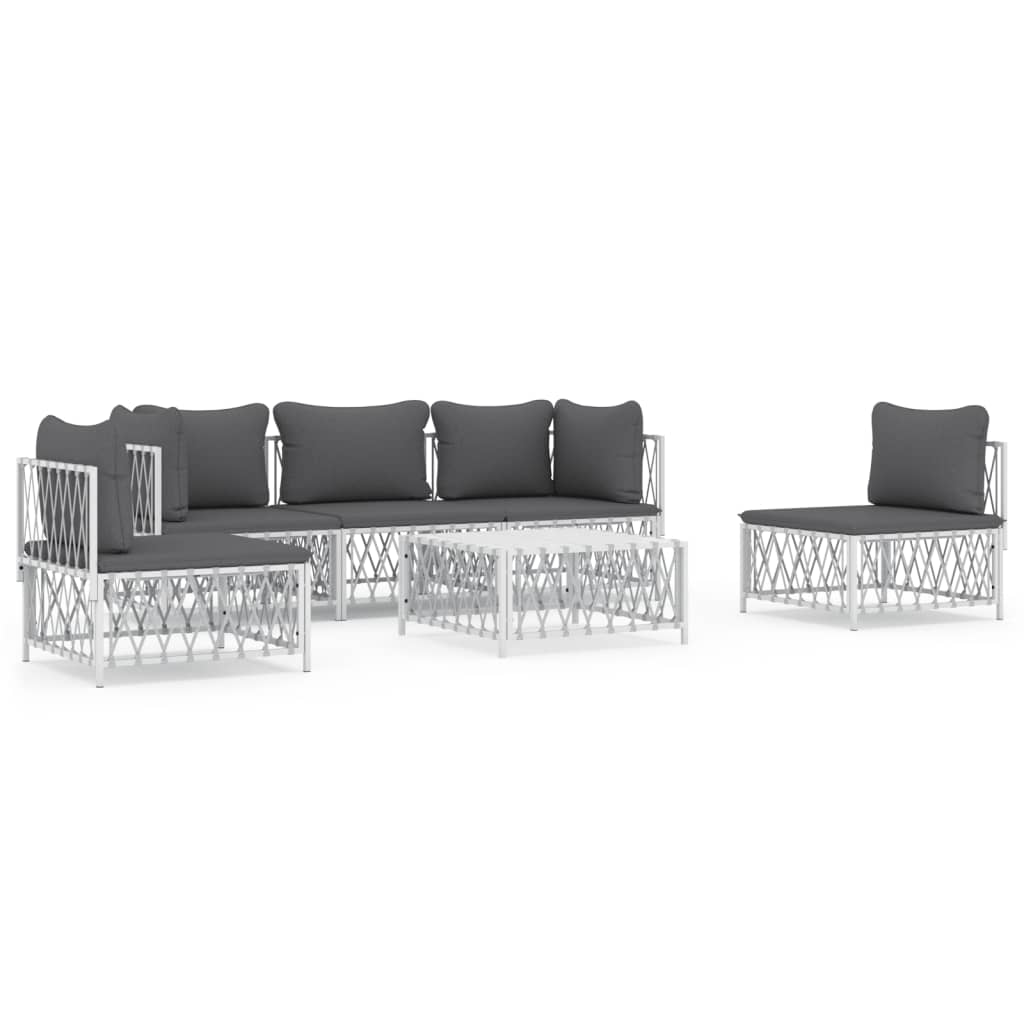 Set mobilier de grădină, 6 piese, cu perne, alb, oțel GartenMobel Dekor