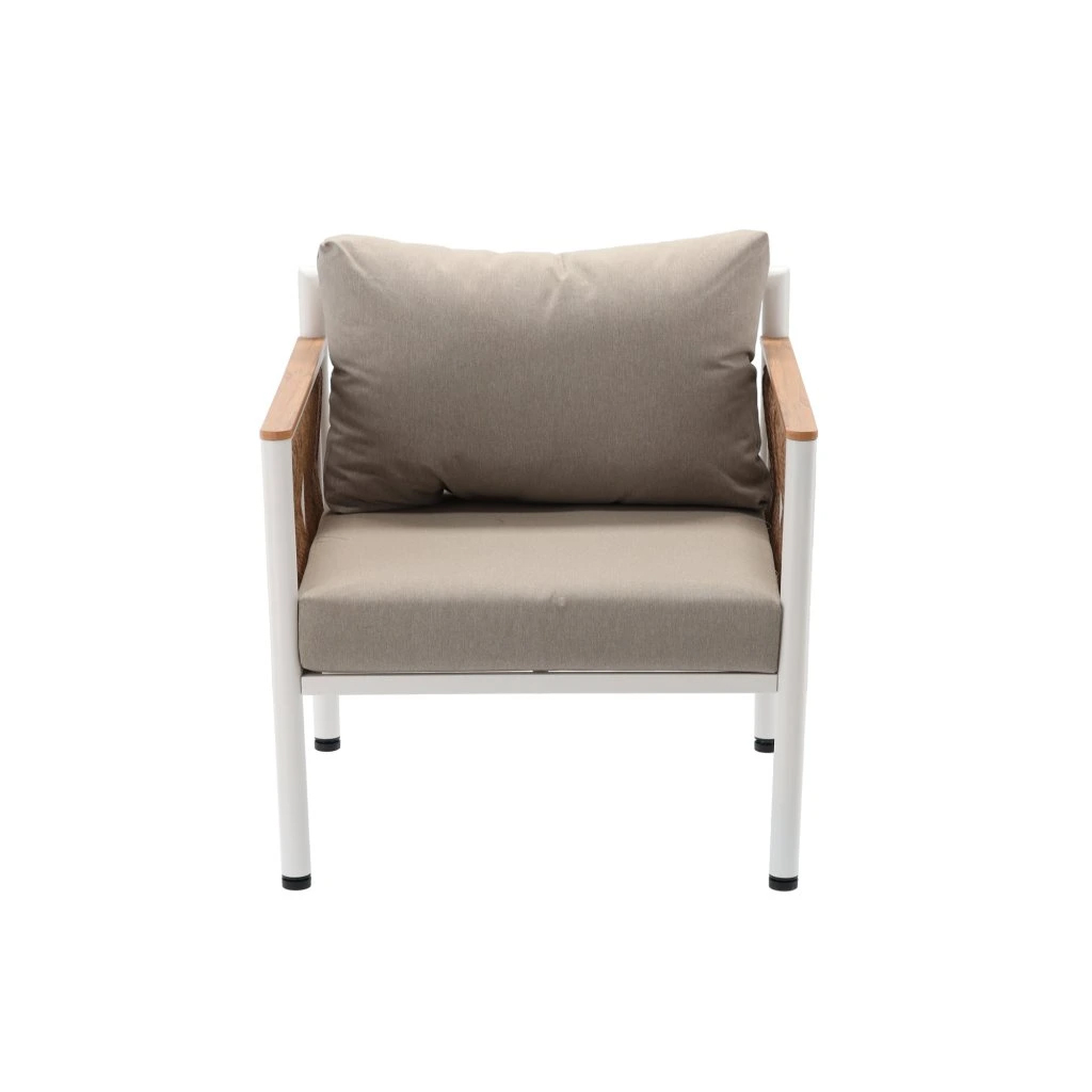Acest set de mobilier exterior este conceput pentru confort și durabilitate. Cadrul din aluminiu vopsit electrostatic este rezistent la uzură și coroziune, iar elementele din polywood adaugă un plus de stil și întreținere facilă. Pernele din poliester cu umplutură din spumă contribuie la o ședere plăcută, fie că savurezi cafeaua de dimineață, fie că petreci timp cu familia sau prietenii.