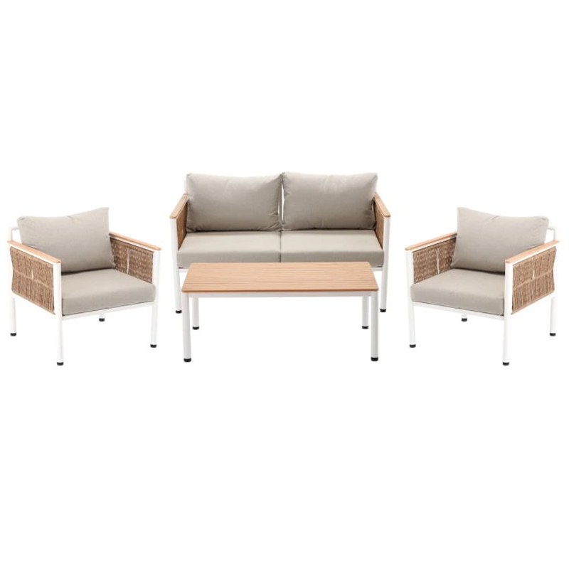 Alege un set mobilier de grădină elegant și practic pentru momentele tale de relaxare în aer liber. Modelul Belgrad include o canapea de 2 locuri, 2 fotolii confortabile și o masă de cafea, fiind ideal pentru terasă, balcon, grădină sau chiar foișor. Combinația dintre cadrul din aluminiu, finisajele tip lemn și pernele bej oferă un aspect modern, cald și ușor de integrat în amenajări contemporane.