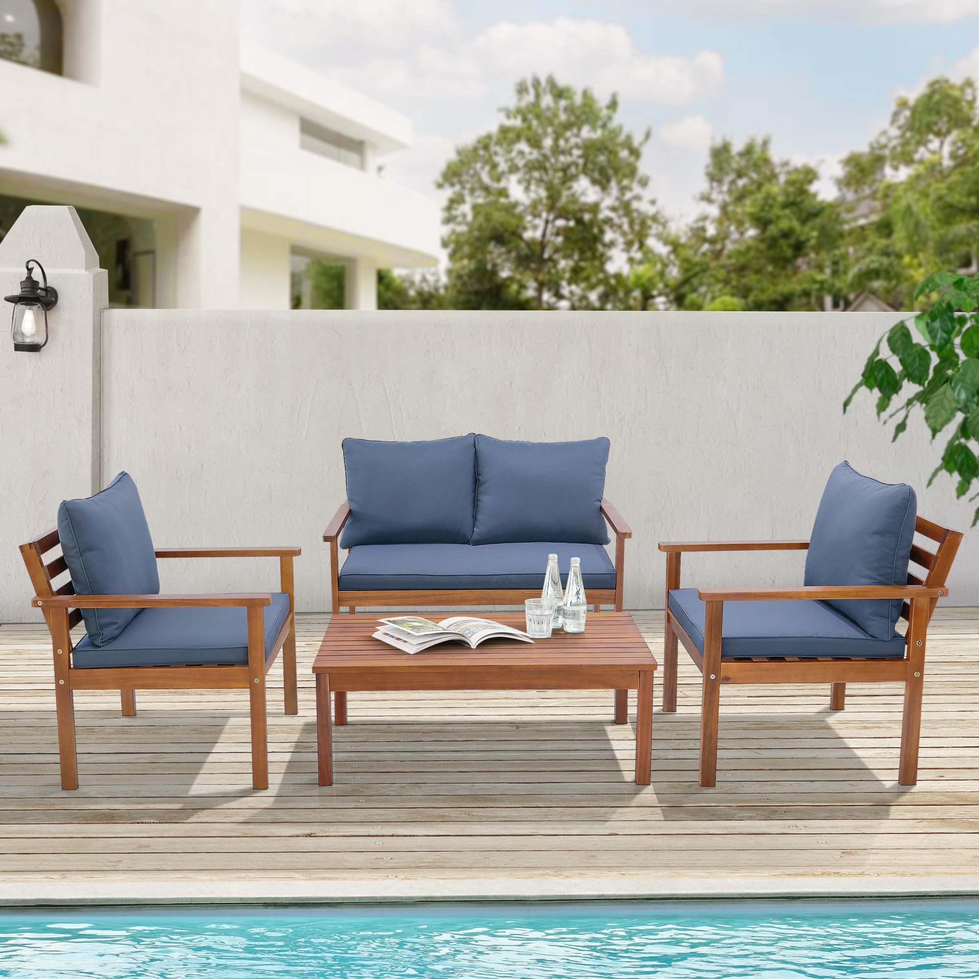 Pachetul conține 1 masă de exterior, 1 bancă de exterior cu perne și 2 scaune de exterior cu perne. Dacă îți dorești un set mobilier grădină din lemn care combină designul elegant, confortul și funcționalitatea, modelul Brittoli este o opțiune excelentă pentru orice spațiu outdoor.