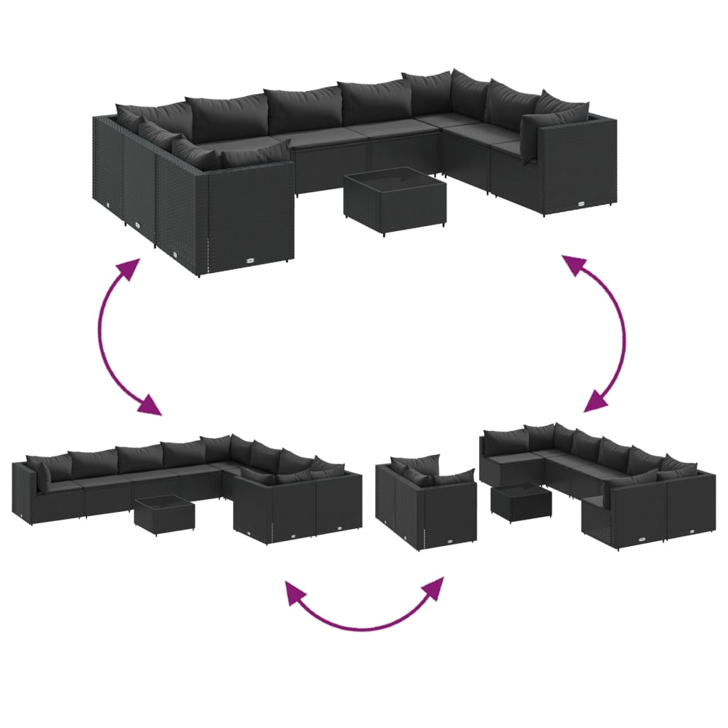 Set mobilier de grădină cu perne, 10 piese, negru, poliratan GartenMobel Dekor