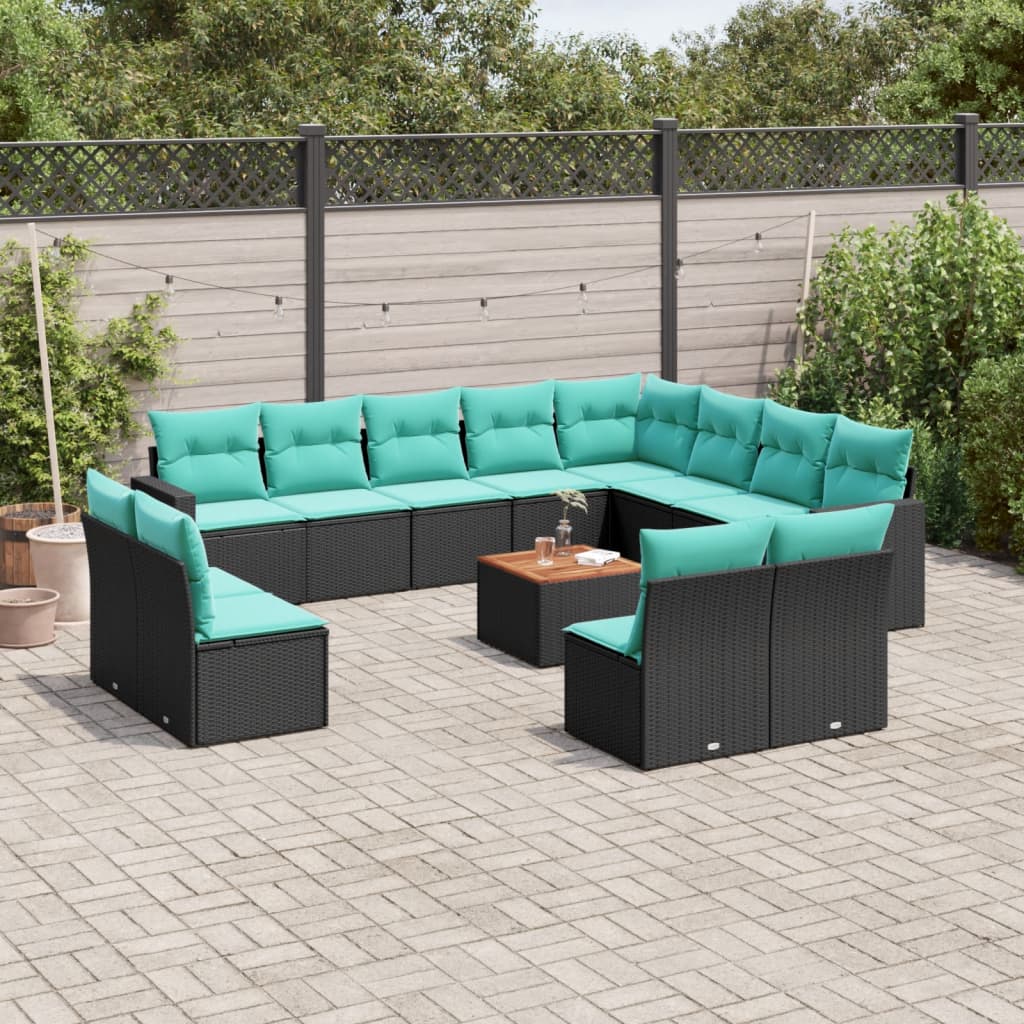 Set mobilier de grădină cu perne, 13 piese, negru, poliratan GartenMobel Dekor