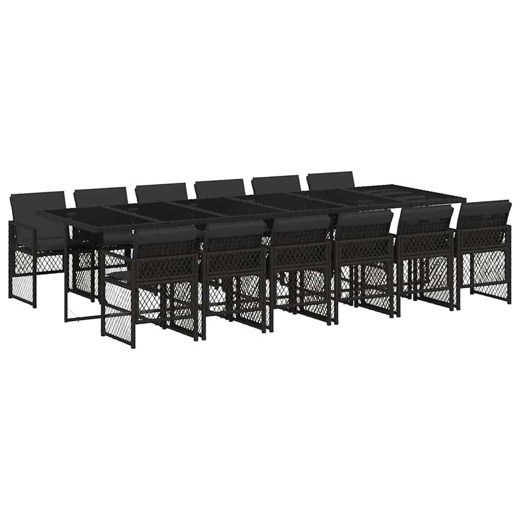 Set mobilier de grădină cu perne, 13 piese, negru, poliratan GartenMobel Dekor