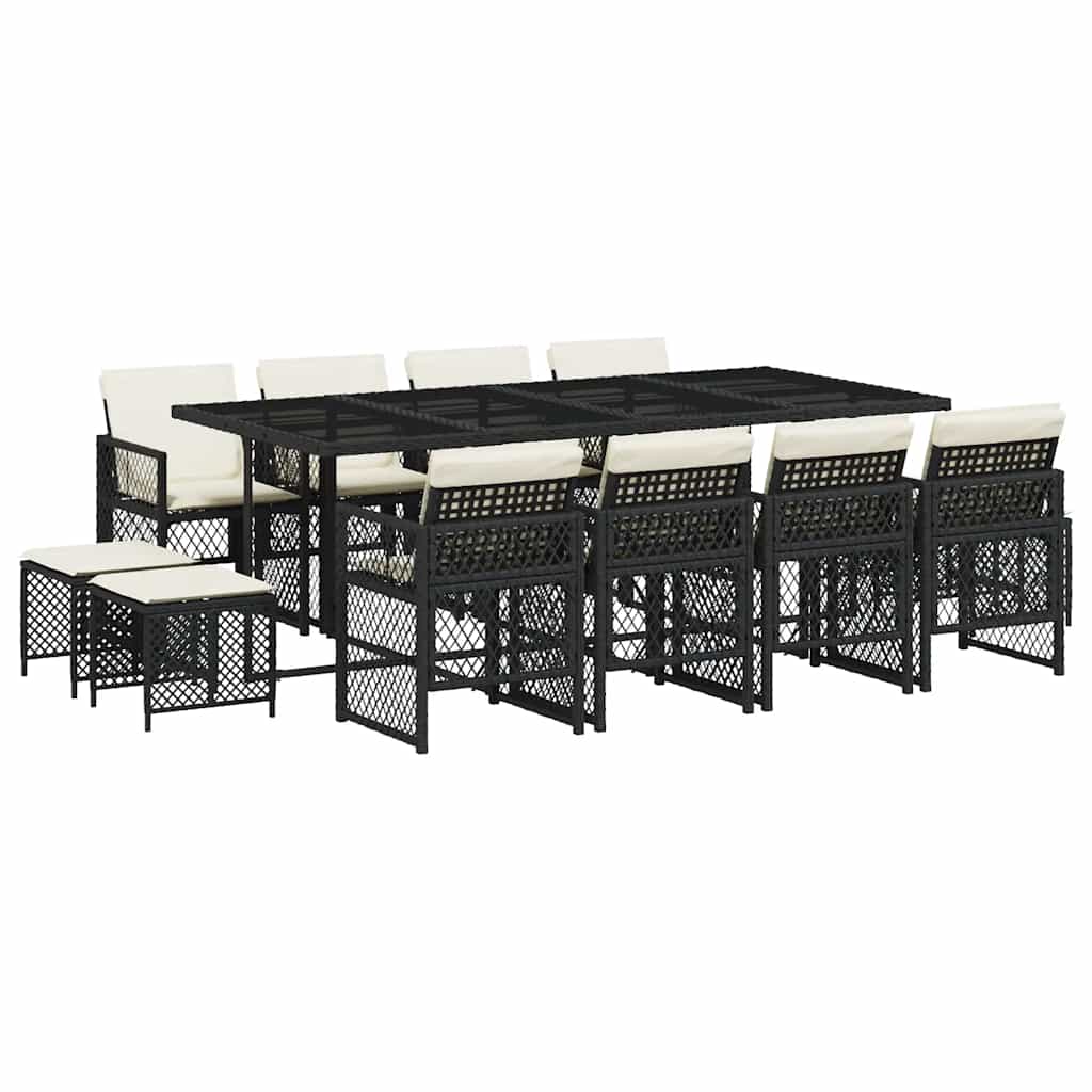 Set mobilier de grădină cu perne, 13 piese, negru, poliratan GartenMobel Dekor