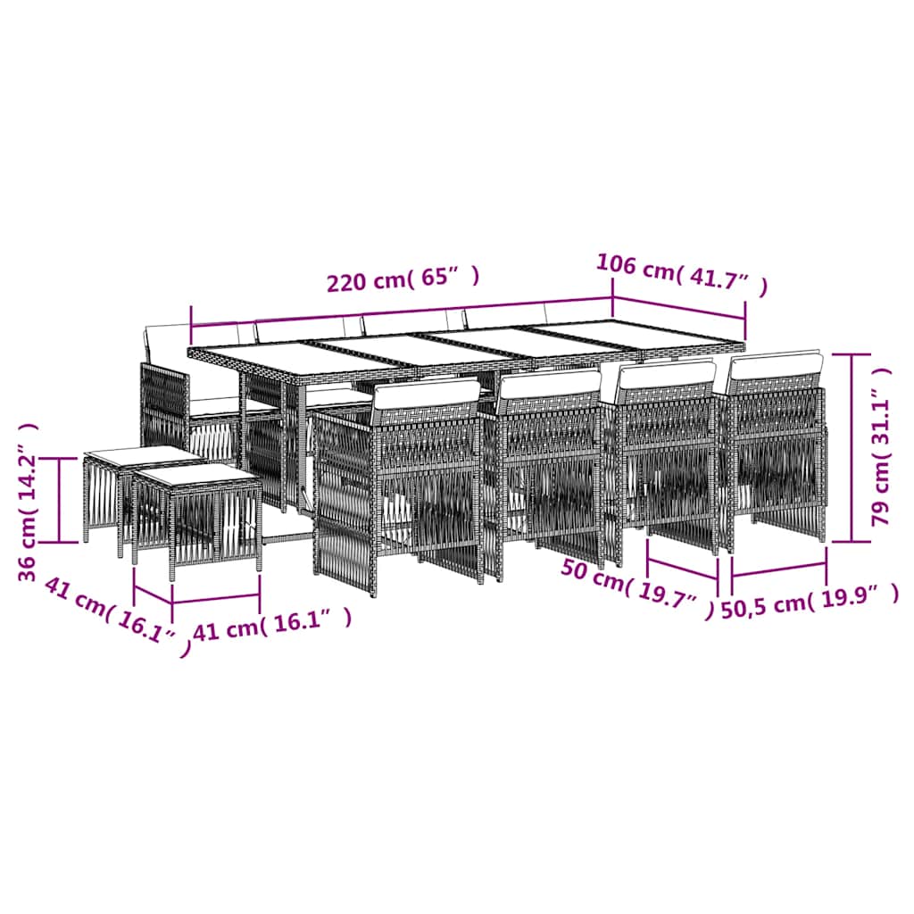 Descriere Set mobilier grădină perne, 13 piese,
