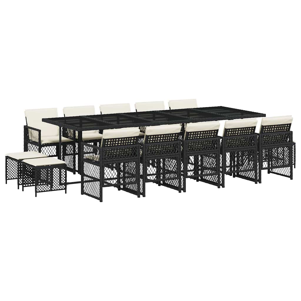 Set mobilier de grădină cu perne, 15 piese, negru, poliratan GartenMobel Dekor