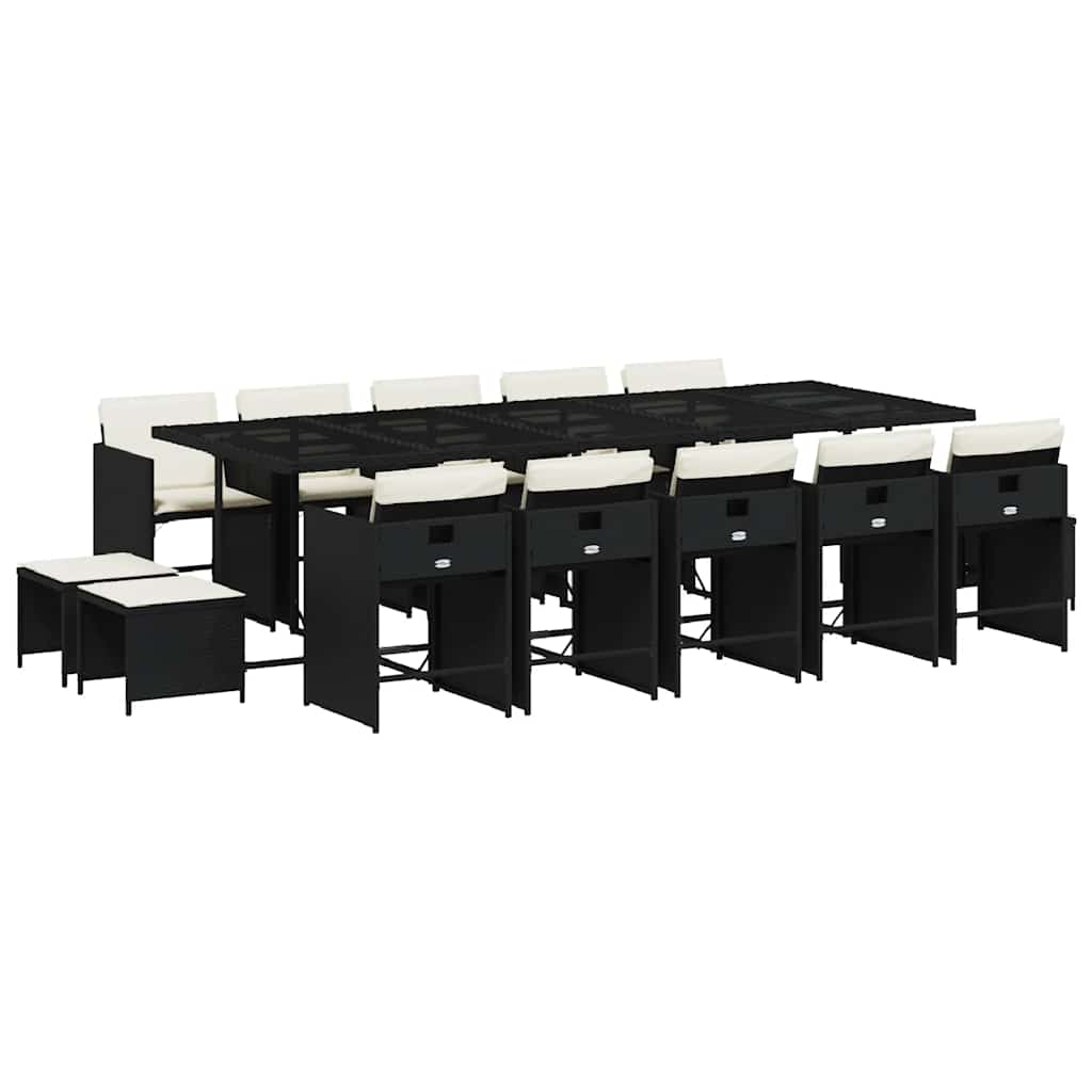 Set mobilier de grădină cu perne, 15 piese, negru, poliratan GartenMobel Dekor