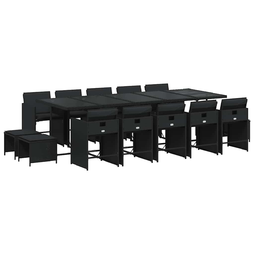 Set mobilier de grădină cu perne, 15 piese, negru, poliratan GartenMobel Dekor