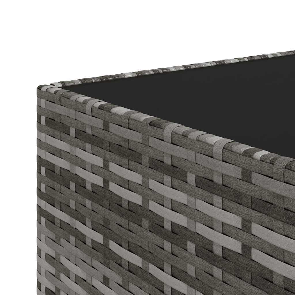 - Material: ratan PE, oțel vopsit electrostatic, textil (100% poliester), sticlă călită
