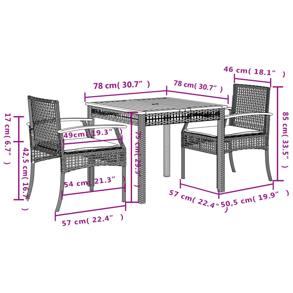 - Material: Ratan PE, oțel vopsit electrostatic, lemn masiv de acacia cu