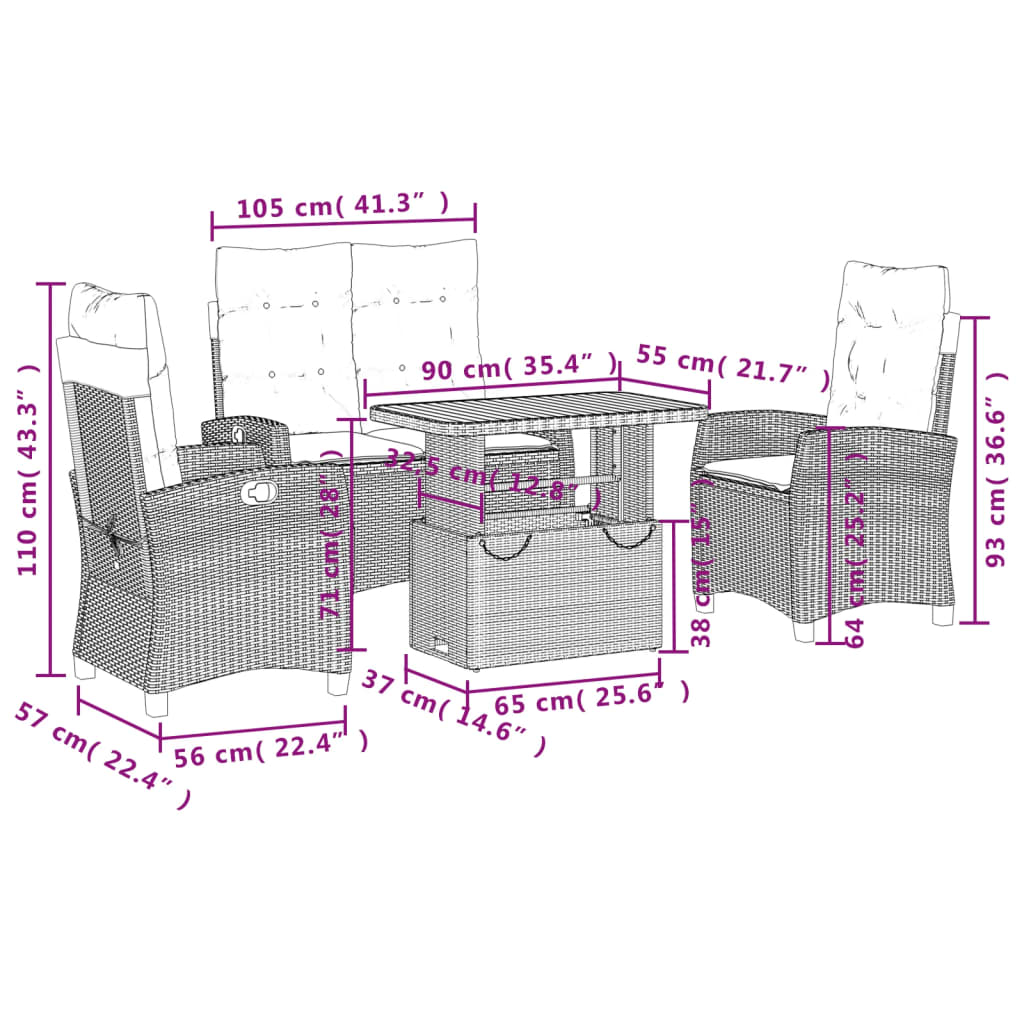 Set mobilier de grădină cu perne, 4 piese, negru, poliratan GartenMobel Dekor