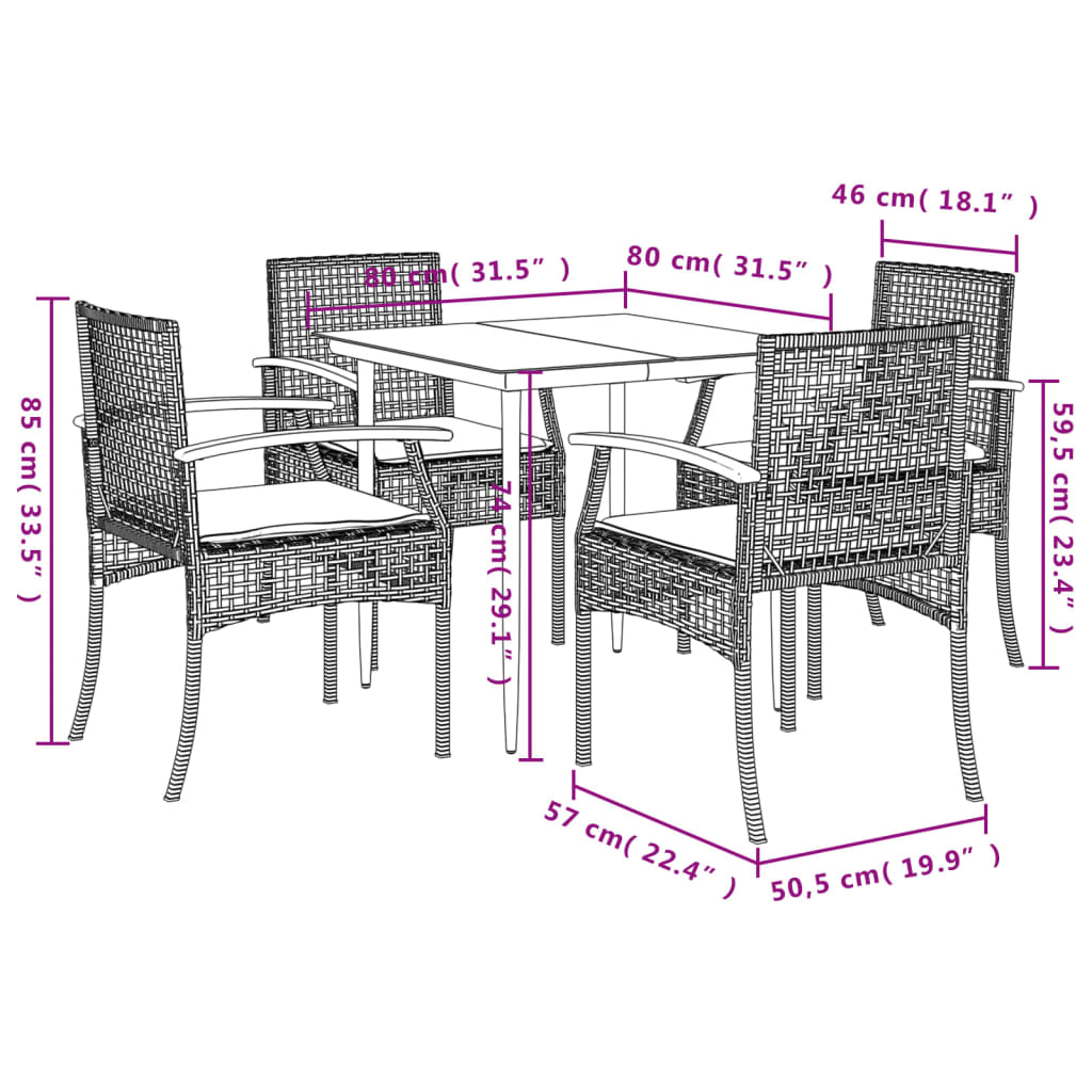 - Material: Ratan PE, oțel vopsit electrostatic, lemn masiv de acacia cu finisaj în ulei