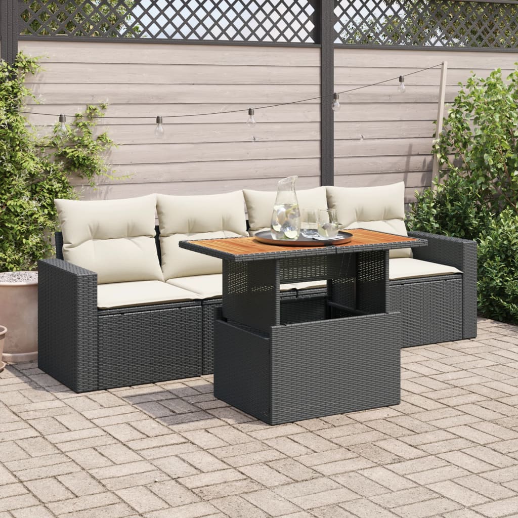 Set mobilier de grădină cu perne, 5 piese, negru, poliratan GartenMobel Dekor