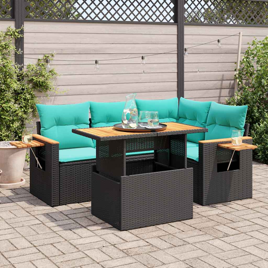 Set mobilier de grădină cu perne, 5 piese,poliratan/lemn acacia GartenMobel Dekor