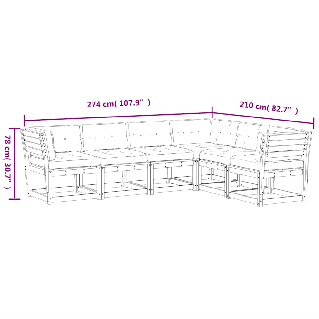 Set mobilier de grădină cu perne, 6 piese, lemn masiv de pin GartenMobel Dekor