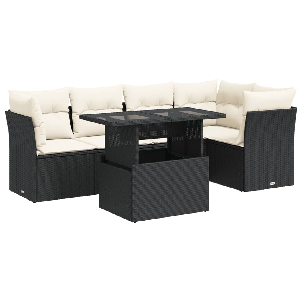 Set mobilier de grădină cu perne, 6 piese, negru, poliratan GartenMobel Dekor