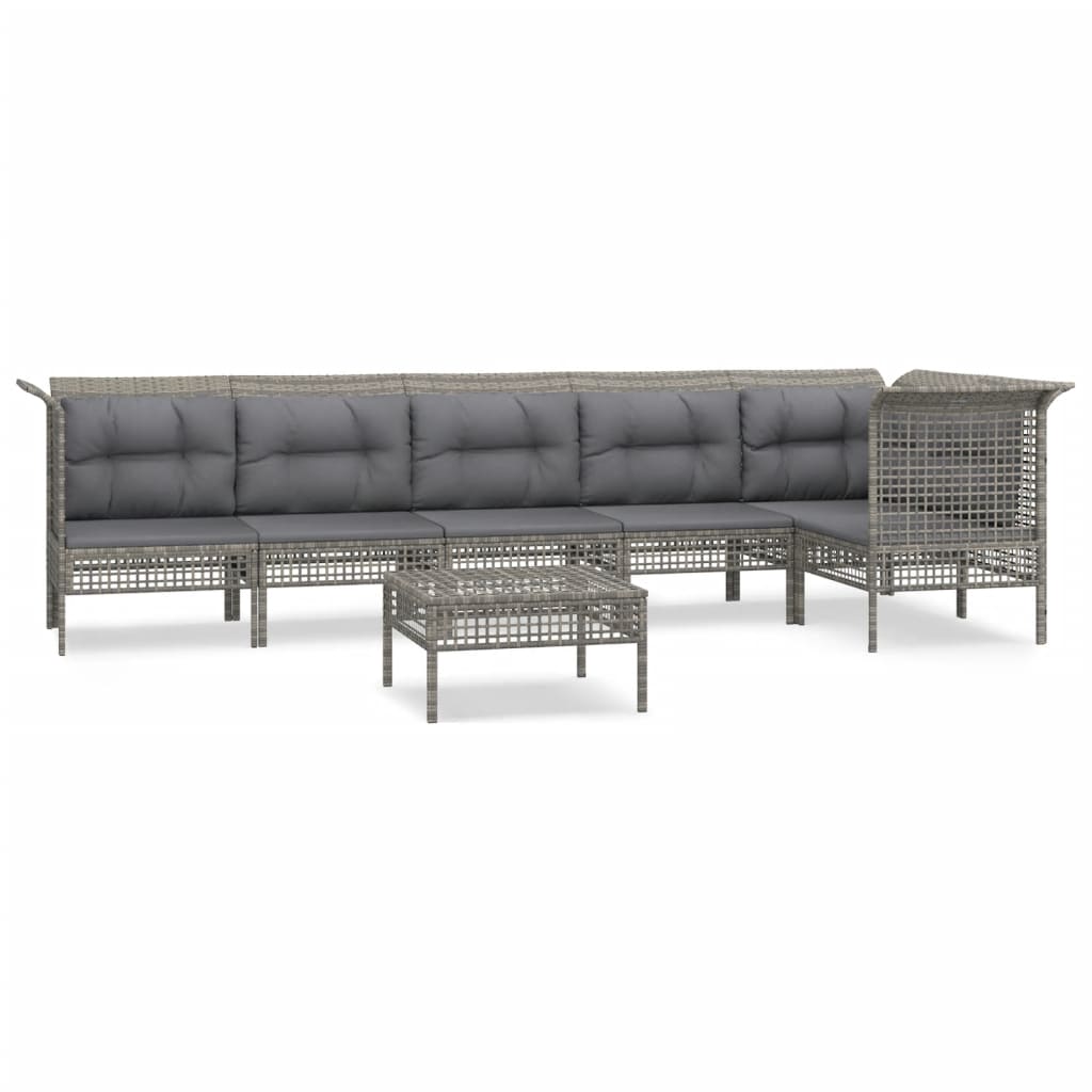 Set mobilier de grădină cu perne, 7 piese, gri, poliratan GartenMobel Dekor