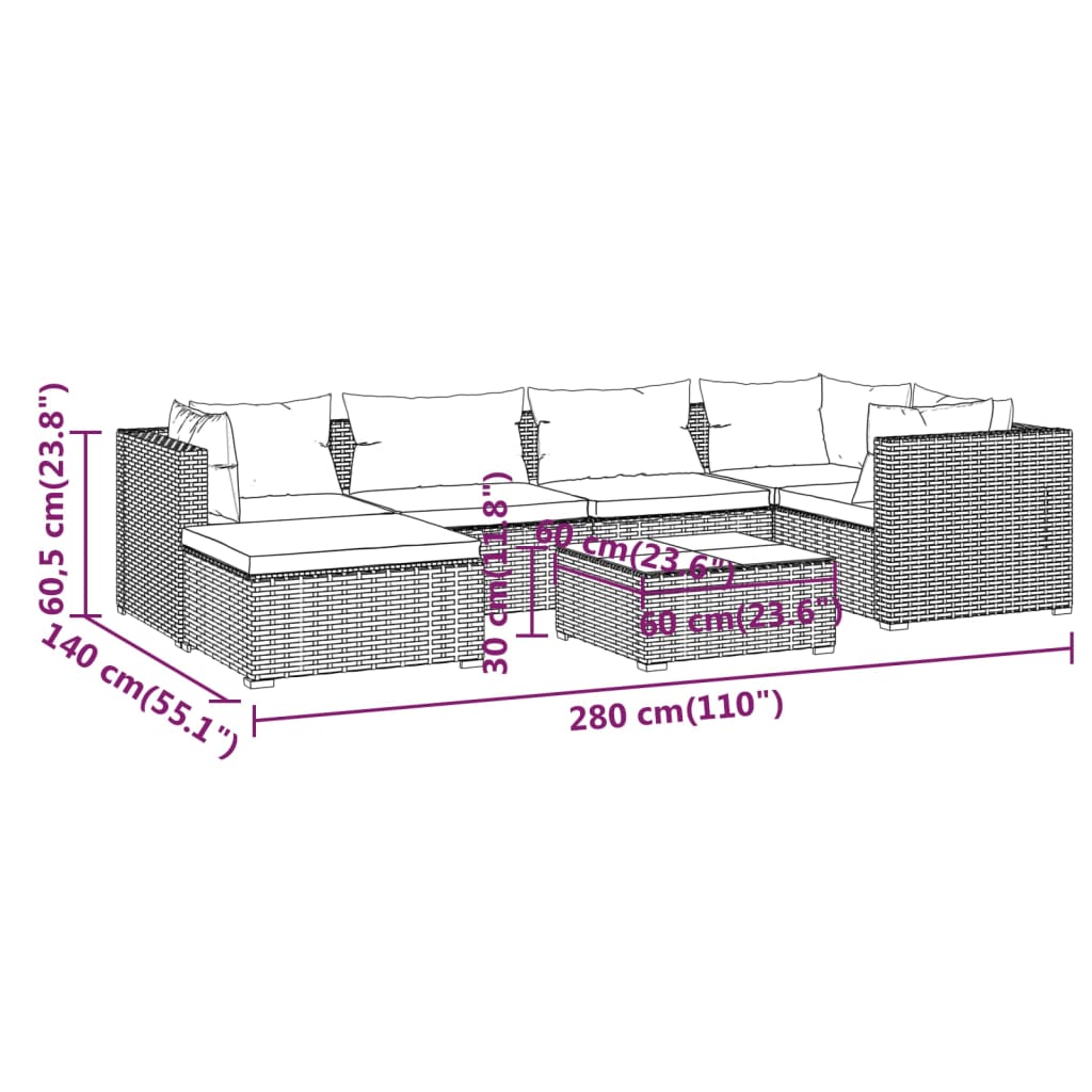 Set mobilier de grădină cu perne, 7 piese, gri, poliratan GartenMobel Dekor