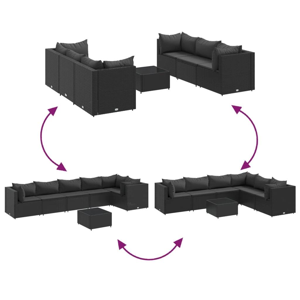 Set mobilier de grădină cu perne, 7 piese, negru, poliratan GartenMobel Dekor