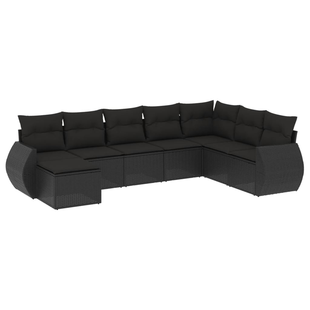 Set mobilier de grădină cu perne, 8 piese, negru, poliratan GartenMobel Dekor