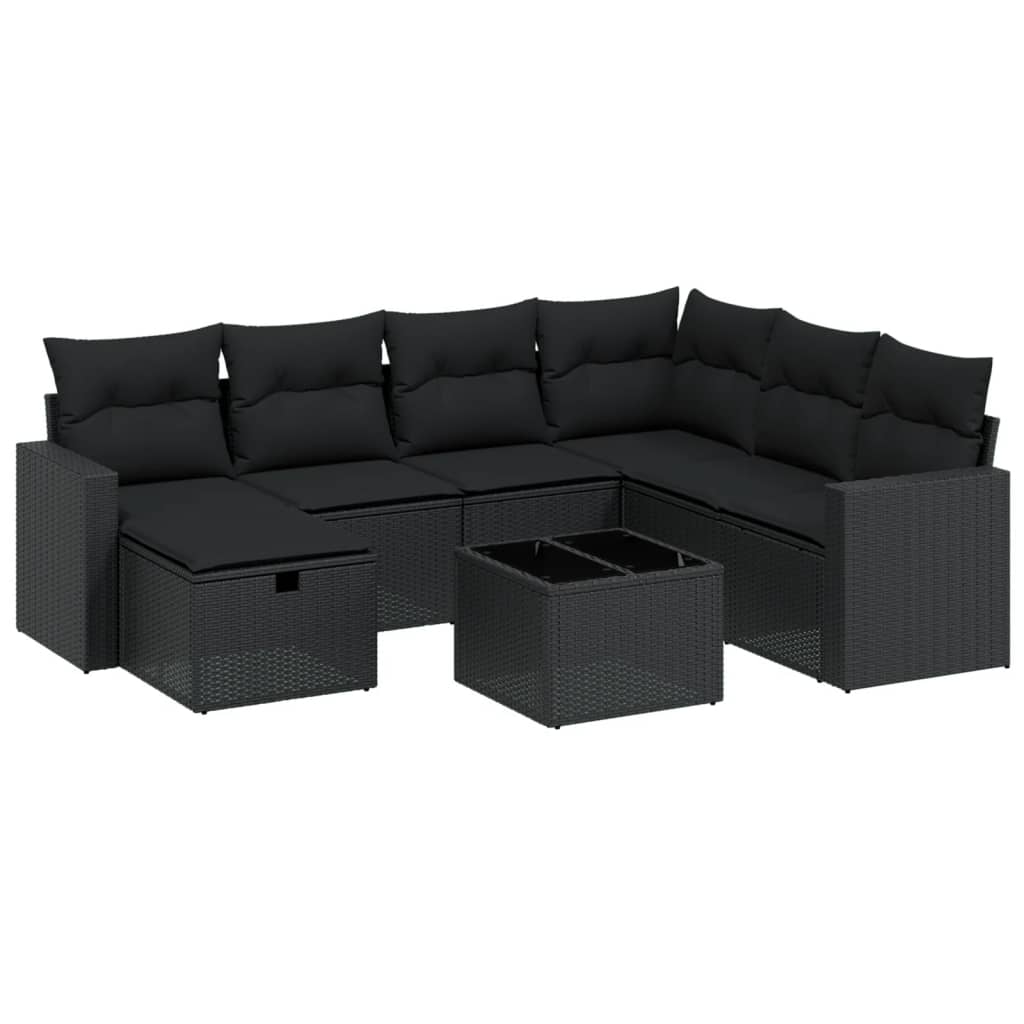 Set mobilier de grădină cu perne, 8 piese, negru, poliratan GartenMobel Dekor