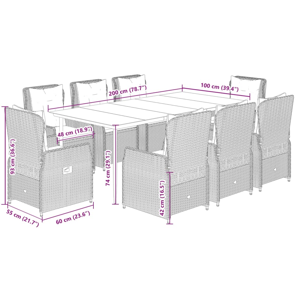 Set mobilier de grădină cu perne, 9 piese, maro, poliratan GartenMobel Dekor