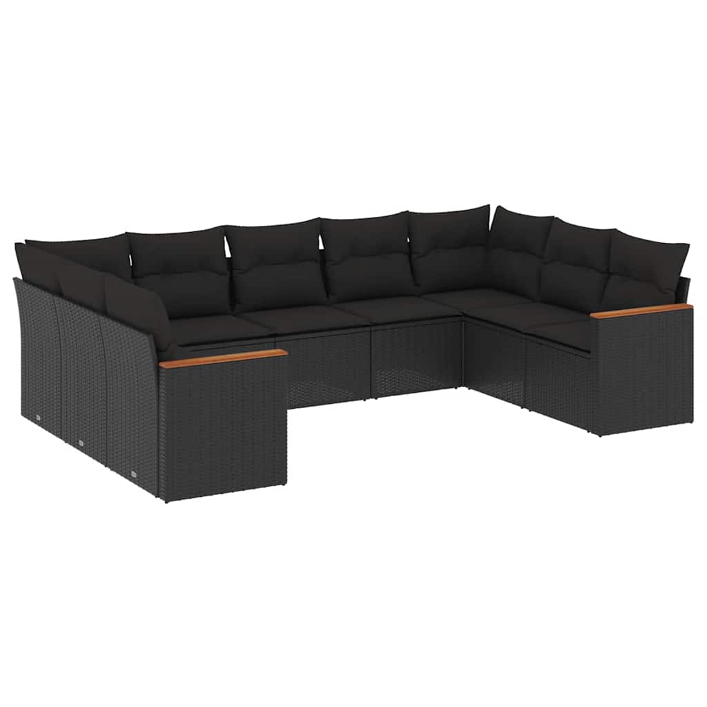 Set mobilier de grădină cu perne, 9 piese, negru, poliratan GartenMobel Dekor