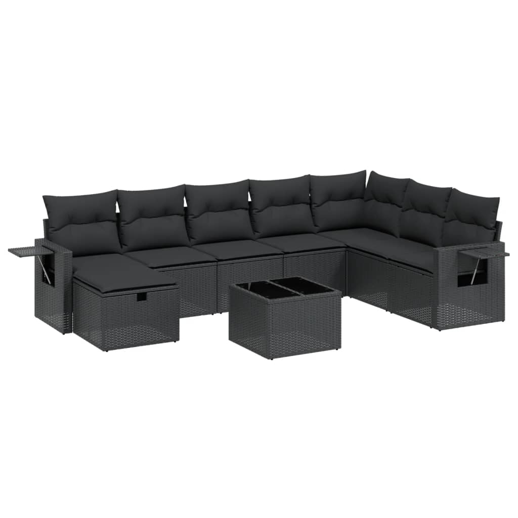 Set mobilier de grădină cu perne, 9 piese, negru, poliratan GartenMobel Dekor