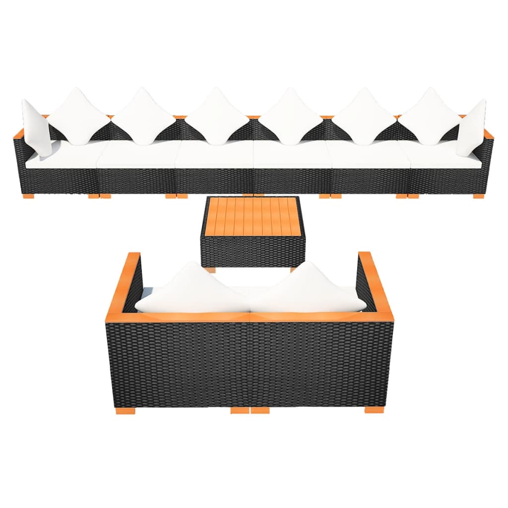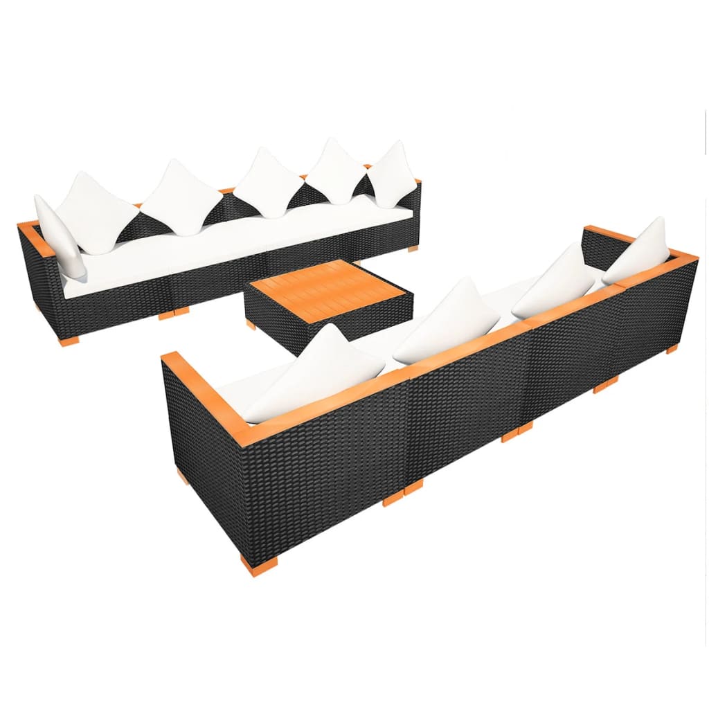 Set mobilier de grădină cu perne, 9 piese, negru, poliratan GartenMobel Dekor