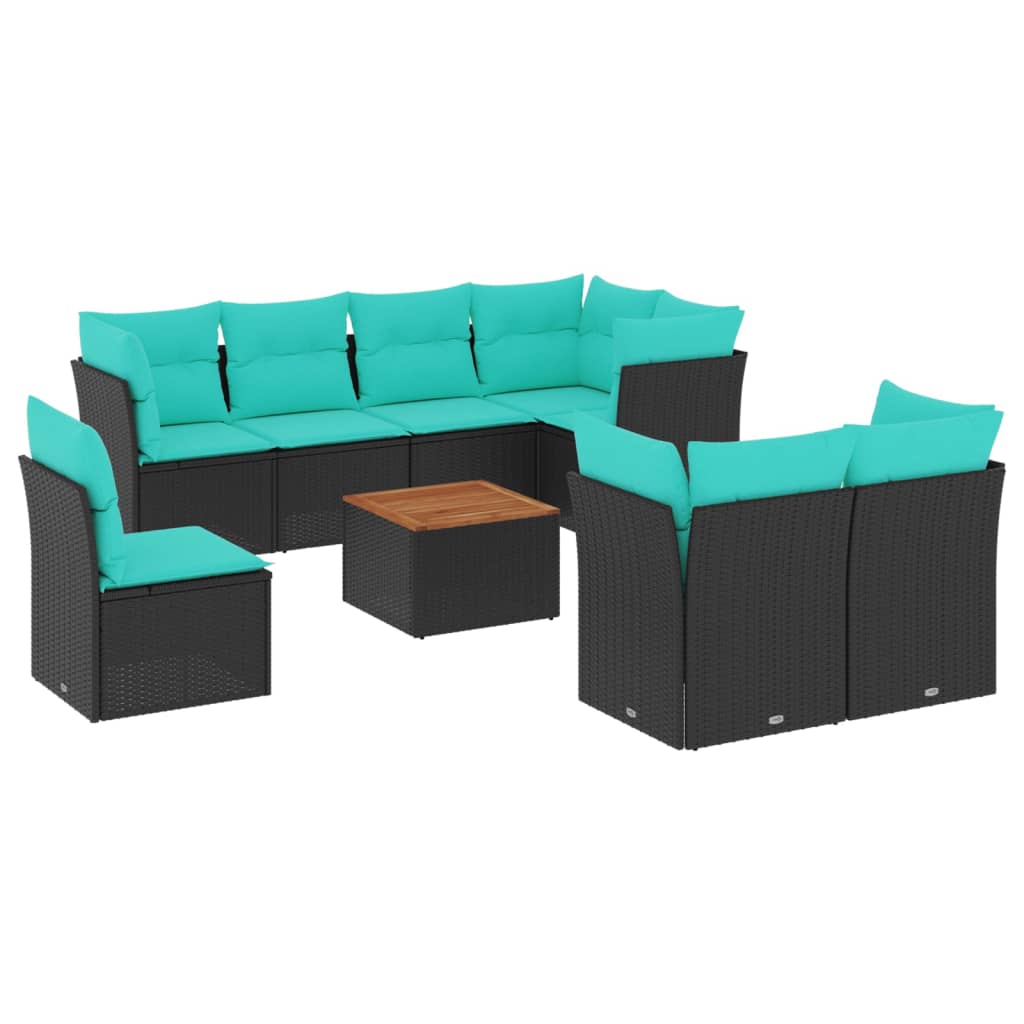 Set mobilier de grădină cu perne, 9 piese, negru, poliratan GartenMobel Dekor