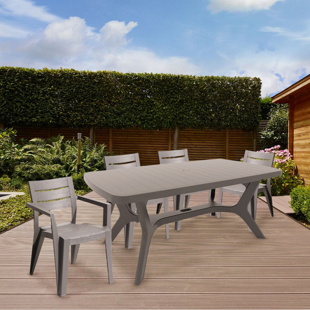 Setul de mobilier de grădină Curver Juliemore 4+1 în nuanță cappuccino este alegerea ideală pentru terasă, curte sau grădină, oferind un aspect modern și un confort excelent la utilizare. Cu o masă de grădină spațioasă și 4 scaune confortabile, acest set este potrivit pentru mese în familie, întâlniri relaxante în aer liber sau momente plăcute petrecute cu prietenii.