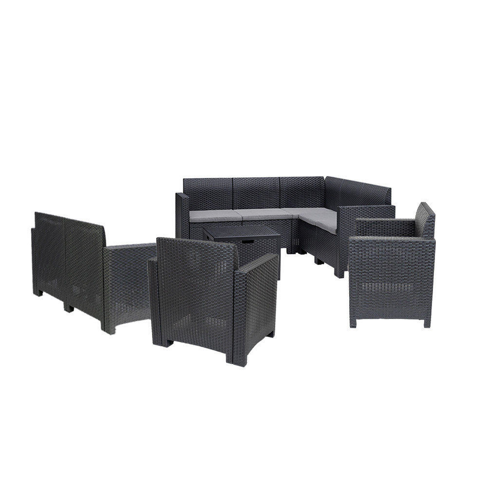 Set mobilier de grădină de colț Leziter Nero V, 9 locuri, grafit