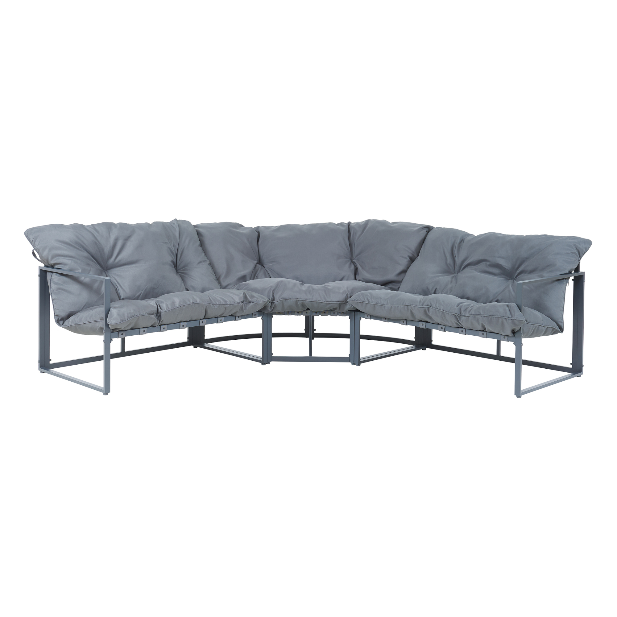 Designul său contemporan, în nuanță gri închis, se integrează ușor în diverse stiluri de amenajare exterioară. Pernele groase pentru șezut și spătar oferă un nivel ridicat de confort, iar materialele rezistente fac acest set mobilier exterior potrivit pentru utilizare frecventă în sezonul cald.