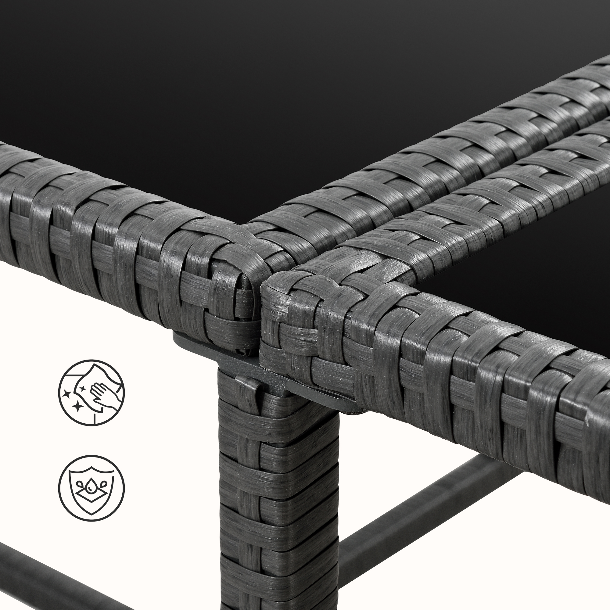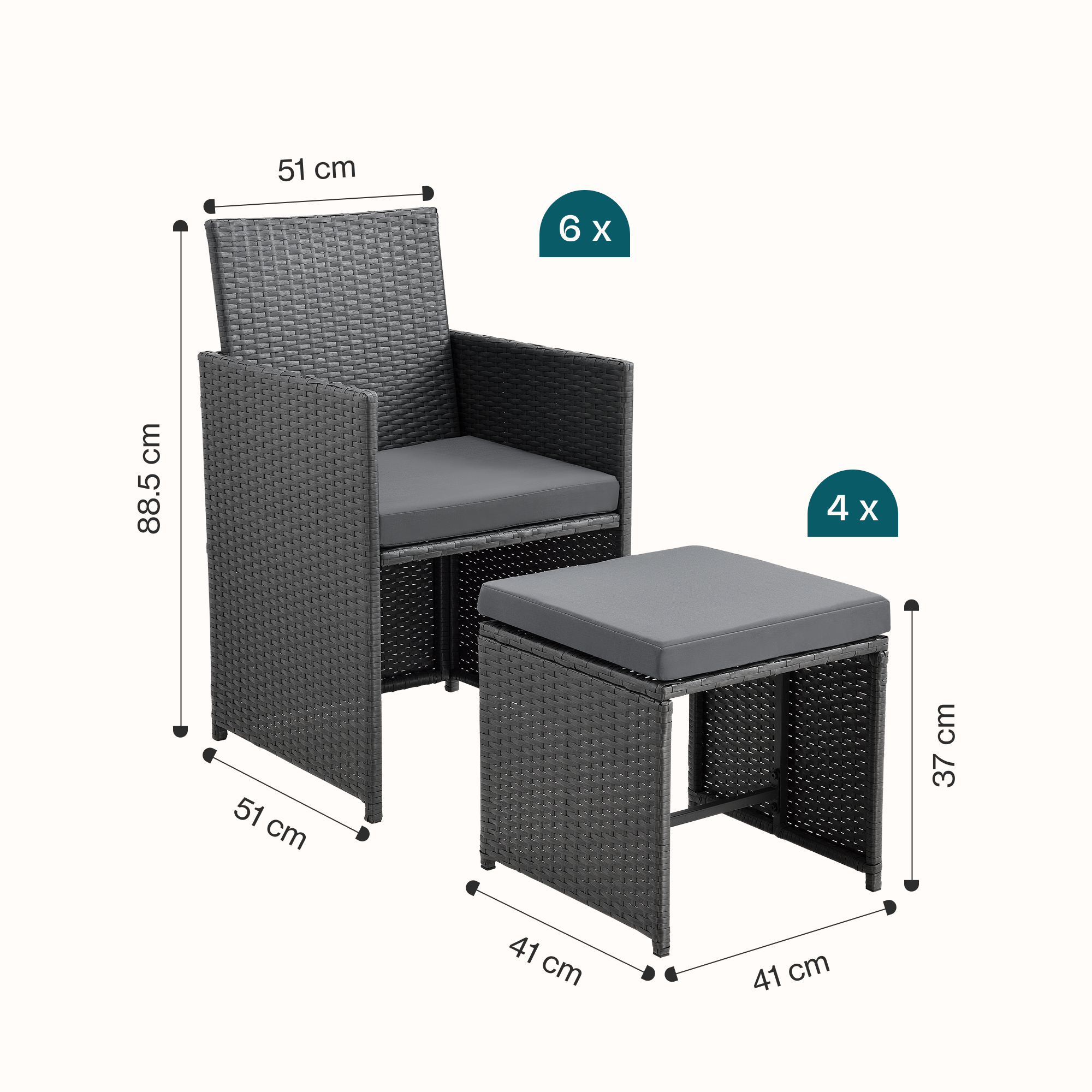 Alege un set mobilier de grădină din poliratan elegant și practic, ideal pentru relaxare și servirea mesei în aer liber. Modelul Laredo XL include o masă spațioasă, 6 scaune confortabile și 4 taburete, fiind potrivit pentru terasă, grădină sau balcon. Designul modern în nuanțe de gri închis se integrează ușor în amenajările exterioare contemporane.