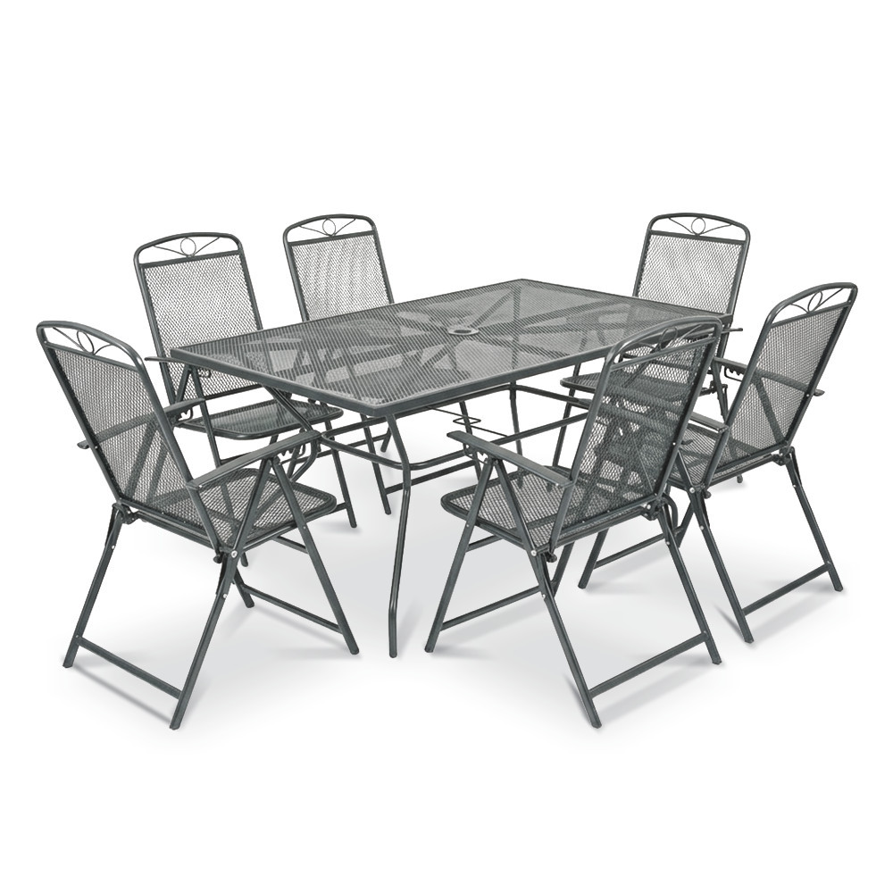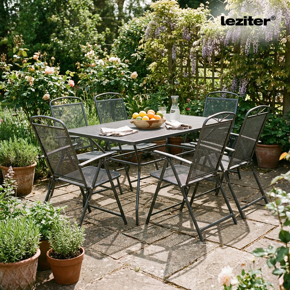 Transformă terasa, grădina sau balconul într-un spațiu primitor cu acest set de mobilier de grădină 6+1 Leziter Alfi, realizat din oțel cu plasă metalică și finisat elegant în nuanță antracit. Setul este gândit pentru mese în familie, întâlniri cu prietenii și momente relaxante în aer liber, oferind un echilibru foarte bun între durabilitate, confort și aspect modern.